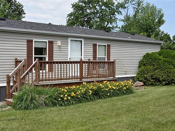 Looking for property out in the country? Here is a mini farm with 10 acres that has a lot of things to offer! This well-maintained manufactured home comes with a roomy detached garage that has extra side storage with a room in back that could eventual be turned into living quarters and a bathroom. Camper parking on side of shed as well. With a snap of your finger take a short "walk or drive" down a mowed path to a large stocked private pond with a dock to do some fishing or float on the water! Property is ready for livestock with a fenced in pasture to accommodate livestock you own or want to own. An apple and pear tree on property as well! Multiple outbuildings come with this property and wood burning stove stays in garage. This also could be an amazing property for a hunting camp or for a nice young family that needs a slice of paradise. Lots of opportunity here and all the appliances convey. Get in on this mini farm before it is gone!