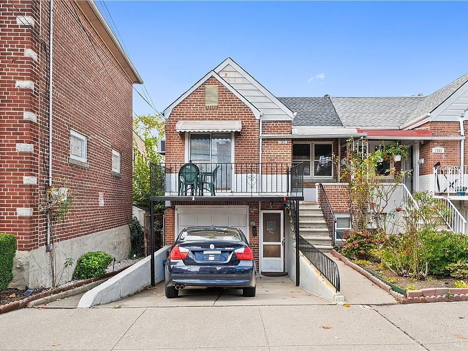 Solid brick two-family semi-detached ranch home with basement, garage and private driveway located in prime Pelham Bay. The main unit is a two bedroom with enclosed porch (potential third bedroom), one bath, large living room, kitchen and dining room with sliding glass doors to front open balcony. The second unit is a one bedroom, one bath and kitchen. There is a separate utility and laundry room in the basement connected to the main unit. The house has a one-car garage underneath and a private driveway. The rooms are spacious. Located on a beautiful tree lined street and is a short walk to #6 Train, #8 Bus, #Q50 Bus, shopping, schools and restaurants. Additional Information: ParkingFeatures:1 Car Attached,