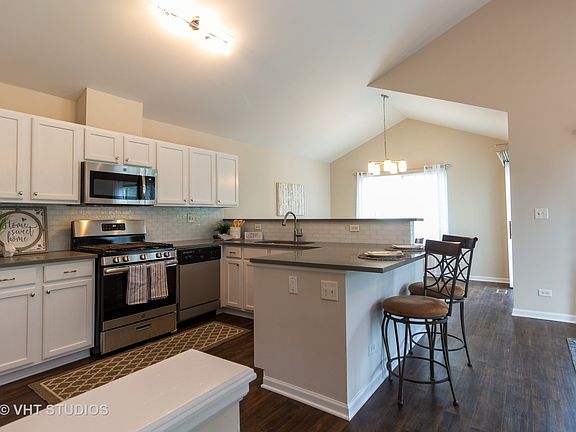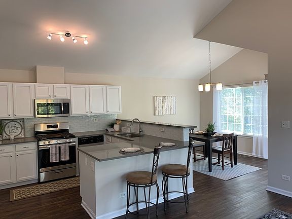 Priced to Sell and MOVE IN READY! This spacious end-unit townhome has almost 1900 sq. ft. of living space, plus a 2-Car garage. The white kitchen with on-trend gray Quartz tops, stainless steel appliances and won't disappoint. An eat-up bar and island great for add'l seating options. This unit was remodeled to have ideal open floorplan. New light fixtures and wood laminate floors throughout main living area. Perfect set up for entertaining. The master has a nice walk-in closet and 2nd bedroom has 2 closets. And the OPEN LOFT is great additional living space. Enjoy a finished english basement with great natural lighting and extra storage under the stairs. perfect flex space for whatever your living needs are. Relax out on a deck just off of the dining area. Perfect for your BBQs or just reading a book. The laundry room offers a sink and extra cabinetry. SUPER CONVENIENT Location with easy access to Rte 14 and 31. Parks in the neighborhood. Mins. to restaurants, shopping, bike trails, The Hollows, golf courses and more. TOP RATED Prairie Ridge schools. QUICK CLOSE POSSIBLE. NOTE: taxes will be less as they do not currently reflect a homeowners exemption.