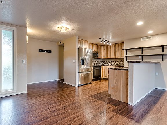 - Features: Dishwasher, Disposal, Eat Bar, Microwave, Free Standing Range, Free Standing Refrigerator, Laminate Flooring