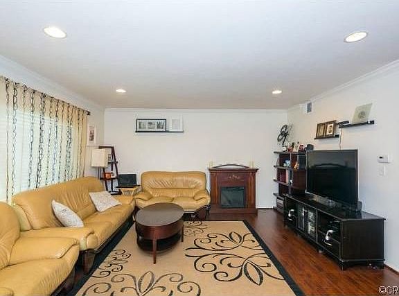 Beautiful remodeled two story townhouse in Pepperwood Village community. Spacious living room with laminate wood floor, recessed lighting, and crown molding. This home also features newer double pane windows throughout. Upgraded kitchen cabinets, counter tops, appliances. Master bedroom features walking closet and laminate wood floor. Newer A/C. All bathrooms have been upgraded. 2 car garage accessed thru the patio area. All rooms have ceiling fans. This well maintained community features an entertainment Club House, gated Pool and Spa, within walking distance to Disneyland and Downtown Disney in the City of Anaheim.