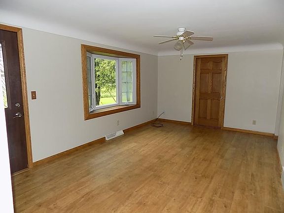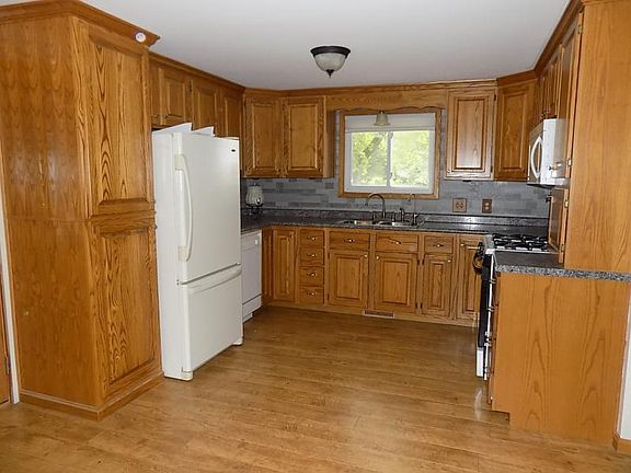 Nice two bdrm, one bath home with full basement located on the outskirts of town. Updated kitchen with pergo flooring open to the dining room. Large living room 11' x 17' 7" with pergo flooring and bay window and new roof added in 2021. Fresh paint throughout, new front doors, spacious bedrooms, walk in closet and large bathroom with shower and jetted tub. Breezeway with stackable washer and dryer and full basement with Kineko water softener. Nice size yard, deck in front with overhang and beautiful large Trex composite decking in the back with built in lighting, great area for entertaining. Attached one car garage, detached two car garage 24' x 24' and shed 34' x 36' for additional storage. Call to set up a showing.
