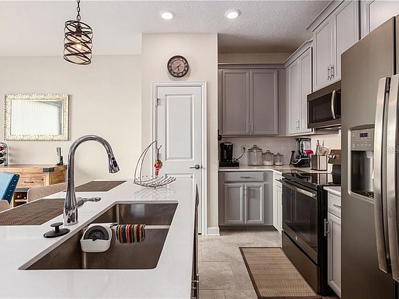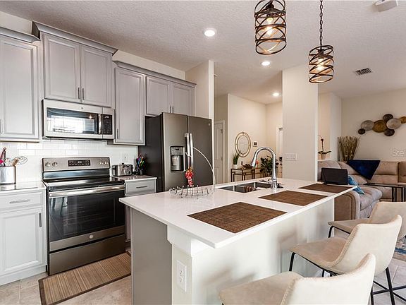 Why wait for construction? This stunning 3 bedroom 2.5 bath villa is practically brand new and ready for its new owners. The spacious floor plan is perfect for entertaining with the large, open first floor and the added privacy of the bedrooms being on the 2nd floor. The kitchen is a cook's dream with the well laid out space including lots of cabinet space, prep space, and separate pantry. The quartz countertops {Throughout the home} & solid wood cabinetry makes sure that it built to last. The upstairs has all the bedrooms, laundry space (thankfully no lugging laundry up and down the stairs!) and a spacious loft. The loft is perfect for a home office, playroom, or even a place for a classroom. The villa is an Alexa Enabled home complete with a Ring doorbell and Lutron lights. The master bedroom takes up the back portion of the upstairs and has not one, but 2 walk in closets. This villa is perfect for staying in, but close enough to everything for going out as well. Located in the sought after planned community of The Vistas @ ChampionsGate, it's like living life on a permanent vacation. This RESORT-style community also offers a large community pool with a TIKI bar, a fitness center, game room and so much more! The clubhouse with all the amenities, the golf course, and being within minutes of world class shopping, dining and entertainment while still being within a short distance to 2 international airports, is the perfect balance between work and play. You won't want to miss this villa. Call today to schedule your private showing. {Warranty from Lennar may be transferrable} Short term rentals not permitted in The Vistas.