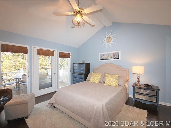 Affordable and Adorable Osage Beach waterfront home that features a gentle sloping lot with 82' of deep water cove location. With the oversize two 1/2 car garage and main level living, this home is perfect for full time or second home living. The three well dock comes with three hoists and the home is offered fully furnished and accessorized - icing on the cake! Many substantial updates over the years will be yours to enjoy including vinyl shake shingle siding, refinished cabinetry and Silestone solid surface counters. Floors are a combination of laminate hardwood and tile for easy care, Nest thermostat, full deck and railing replacement and a fabulous screened porch addition, too. This darlette features vaulted ceilings in the main level, a true master bedroom with private bath and double closets, a cozy fireplace in the oversize family room with wet bar & full size refrigerator. On the Hospital grid, walking path to school, community pool for 28, three boats are avail for adtl $.