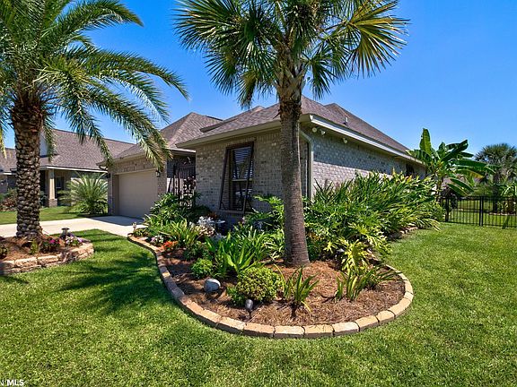This Home is A MUST SEE...Such great CURB APPEAL and style! It really stands out with its beautiful TROPICAL LANDSCAPE and ELABORATE entry-way. It is on a Premium CORNER LOT with approx. 170ft of Waterfront. 3 bed/2 bath SPLIT floor-plan, Open Concept, 9'/10' ceilings, 4 side Brick w/ Stucco entry. Kitchen has under cabinet lighting, Glass Tile backsplash, Slab GRANITE counters and STAINLESS STEEL appliances, double trash bins for recycling, LARGE PANTRY, and a Beverage station with a locking mini-fridge. Ceramic TILE floors throughout the house. 22'x14' FOUR SEASON ROOM addition with Custom-Fit Blinds, its own mini split A/C, and Tongue & Groove PINE Ceilings for that COASTAL feel. The Primary Bedroom has the perfect view of the lake, and has a nice size en-suite! Primary Bath has DOUBLE Vanities and A NEWLY installed Floor to Ceiling over-sized Tiled shower w/ double shower heads, Walk-In Closet, a separate lighted shoe closet, AND a mounted TV as well to watch your morning news while you dress! ENJOY sitting on your Backyard PORCH ADDITION with a panoramic WATER VIEW watching the wildlife, or throw in a line and catch a fish...there are plenty of fish in the lake! The backyard has a nice black ALUMINUM FENCE perfect for pets! There is MORE...30 year shingles, Rain Gutters, a SMART Rain Bird Irrigation Sprinkler System, Keypad garage door opener with remotes, and Keyless front door entry. You will feel safe and secure with the Security System Cameras inside and out, a Whole House 24k Generator NEW in Feb 2022, Hurricane Bahama style window shutters, and there is also a NOAA Home Weather Station. Energy Efficient Features: Vinyl Low EMI windows with radiant barrier roof decking and more! GOLD FORTIFIED Certified Home. Come REVEL in this beautiful GATED community of Cypress Gates! EASY ACCESS to Baldwin Beach Express, 1.3 miles to South Baldwin Hospital, 5.5 miles to OWA Amusement Park and only 25 min to get to the Gulf Shores Beaches!