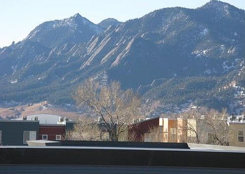 STUNNING VIEWSFlatirons Foothillsunobstructed from lg roof top dk opening to an officestudio3rd BR w wet bar spiral staircase Sunny south facing townhome style Upgraded stainless appliancesmaple hardwood flrs on main lvl warming fireplace in LR custom flat stone private patio w fenced yard Full unfd basement Holiday Neighborhood offers great sense of community w easy walk to restaurants coffee shops parks trails bus stops hiking biking North Boulder living in Style