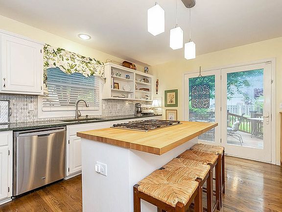 Best deal in desirable Olathe neighborhood of Briarwood! This meticulously maintained house is bursting with charm. The large kitchen featuring quartz countertops, high-end stainless-steel appliances, double ovens, and a farmhouse-style butcher block island leads onto a large deck for entertaining in a beautifully landscaped fenced yard. The home features hardwood floors, a gas burning fireplace, double staircases, a fully finished basement with a wet bar, and generous sized bedrooms.