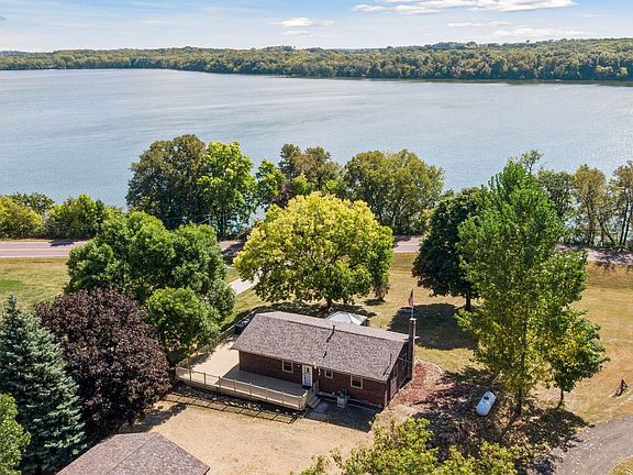 Welcome to your lakeside retreat on Upper Sakatah Lake! This beautiful lakefront property offers 200 feet of shoreline, complete with a ready-to-use dock, making it perfect for relaxation or an entertainer's dream for hosting family and friends. Step inside to discover an open-concept main floor with a kitchen, bar, dining, and living area—ideal for gatherings. Large windows fill the space with natural light and provide stunning views of the lake. The main living area features a unique corrugated metal ceiling, and the kitchen comes equipped with stainless steel appliances and expansive countertops for all your culinary needs. The wrap-around deck offers extensive outdoor living space, where you can soak in the scenery, relax with a morning coffee, or host barbecues. In the freshly carpeted and painted lower level, you'll find a cozy wood stove for supplemental heat and a roughed-in wet bar area ready for your personal touch. Situated on over 1.5 acres, this property also features multiple sheds that could be used for storage, a workshop, or a bunkhouse, providing flexibility for your needs. The driveway leads to an oversized two-car garage, ensuring ample parking. With three bedrooms and two bathrooms, this home offers practical living spaces. Enjoy evenings by the fire pit overlooking the lake, and take advantage of the 892-acre Upper Sakatah Lake, which connects to two other lakes, providing a combined 2,000 acres of water for recreation. This property offers an excellent opportunity to enjoy lakefront living with plenty of space and amenities.