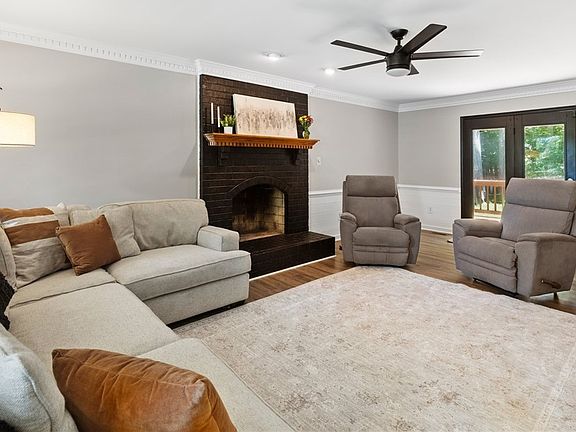 Welcome home to this stunning two-story transitional beauty that radiates charm and style from the moment you arrive! Nestled on a picturesque corner lot with fresh landscaping and a welcoming full country front porch, this home boasts unbeatable curb appeal and thoughtful design throughout. Step inside to an expansive family room featuring a wood-burning fireplace with classic brick surround, a handsome wood mantle, and elegant dentil molding, a perfect spot for cozy gatherings or entertaining guests. The gourmet kitchen is a true showstopper with stainless steel appliances, granite countertops, a stylish tile backsplash, recessed lighting, and trendy floating shelving that offers both form and function. Just off the kitchen, the laundry room doubles as a mudroom, complete with shiplap detailing, a built-in bench, and coat hooks, perfect for everyday convenience. A modern half bath on the main level features a contemporary vanity and charming wainscoting details, while the formal dining room impresses with hardwood floors, chair rail, and classic dentil molding, making it ideal for hosting dinner parties or holiday meals. Upstairs, retreat to the private primary suite featuring crown molding, plush carpet, a generous walk-in closet, and a spacious en suite bath with dual vanities. Two additional bedrooms, each with oversized closets and cozy carpeting, share a well-appointed full hall bath with a tub/shower combo. The outdoor living space is an absolute oasis, complete with a large rear deck, a custom paver patio, and a sprawling fenced-in backyard, perfect for play, pets, or relaxing weekends. A detached storage shed offers convenient space for tools, lawn equipment, or hobbies. This home truly has it all, style, space, and functionality, all wrapped up in a timeless design.