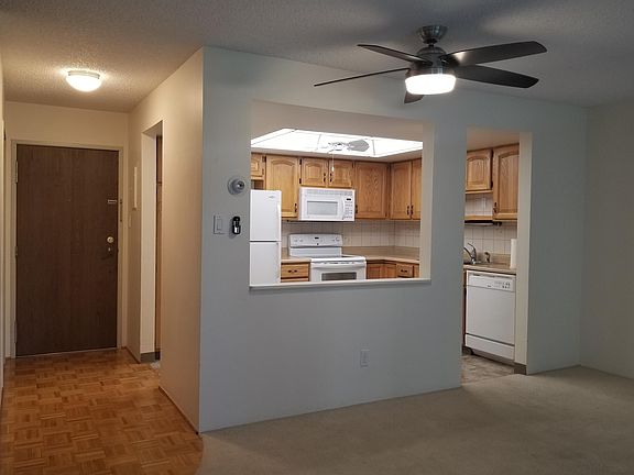 Beautiful location in secured building at 55+ community of Heather Gardens. Beautiful view from the glass-enclosed balcony. Heat water sewer trash and HOA fees included. Secure underground parking cowboy locker and utility storage locker included. Enjoy all of the amenities including indoor and outdoor pools fitness center golf course walking and biking trails restaurant and clubhouse classes and activities. This rental is close to lightrail buses restaurants and shopping. It's a great place to live.