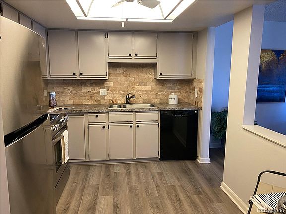 Gorgeous Golf Course & Pond View! Don’t miss this beautifully renovated 2 bed 2 bath 1200 sq ft end unit in Heather Gardens- one of Denver’s premier 55+ communities. This unit boasts of a an “Open-Concept” floor plan with sharp updates in gray/beige tones. Enjoy cooking and entertaining in the spacious eat-in kitchen with its’ updated cabinets, counters and appliances and which opens to a large living room/ dining area. The oversized Master bedroom boasts an en-suite ¾ bathroom w/ walk-in shower, 2 large closets, updated cabinets, new white blinds and view of the wild life preserve. The Secondary bedroom/den with an updated hall bath is great for guests or office. Finally come relax with your coffee and a good book on the 20 ft enclosed lanai with the amazing view of the HG golf course and pond. Additionally, this lovely unit has new plank flooring/carpet/paint; full sized washer & dryer, in-unit storage closet and 2 additional storage closets. A convenient building garage parking space (#26) close to the elevator with a large Cowboy Storage locker completes this home. Come create a new life for yourself in this beautiful home & the wonderful HG Country Club Lifestyle w/ its’ 200+ acres of lush parklike grounds, 10 Mil 50,000 sq ft CH w/award winning 9 hole GC, tennis, indoor(w/ramp)/ outdoor pools, locker rooms, jacuzzi, sauna, fitness center, restaurant and the numerous classes & activities. Convenient nearby shopping, restaurants, light rail & CC Reservoir w/bike/hiking trails/water sports make this home's location ideal. WELCOME HOME!