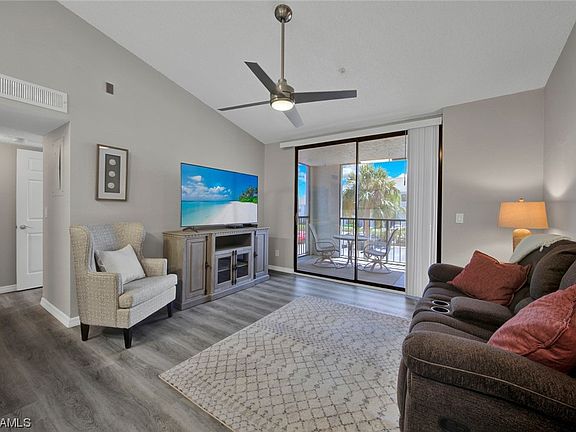 Beautifully Updated and Turn-Key Furnished in Move-in Condition in Prime S.Fort Myers Location near Everything! End Unit and Top Floor, next to Amenities including Resort Style Pool make this condo highly desirable on 2nd floor with spacious Cathedral Ceilings. Great Room Plan with Separate Dining Area and Breakfast Bar. 2 Large Walk-in Closets. New AC. Screened Balcony with Laundry area for Washer & Dryer. NEW Roof 2022. AC Newer 2019. Repiped recently to remove Polybutylene pipes. Low Fees but great amenities with 2 resort style Pools, Heated Spa, Fitness Room, Clubhoues, Pickleball and Basketball Courts and Playground. Minutes to I-75, Tamiami Trail/Highway 41, International RSW Airport, Shopping, Restaurants, Theaters, Parks and More.