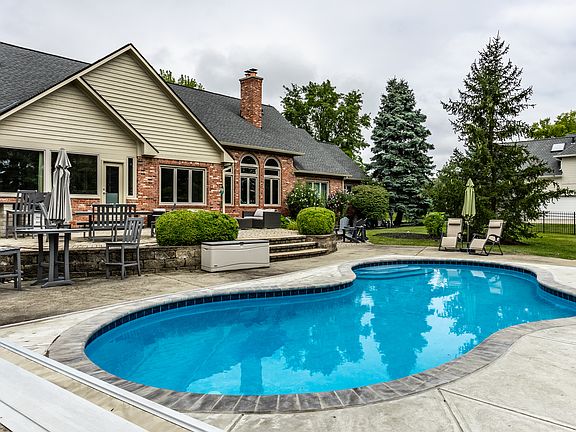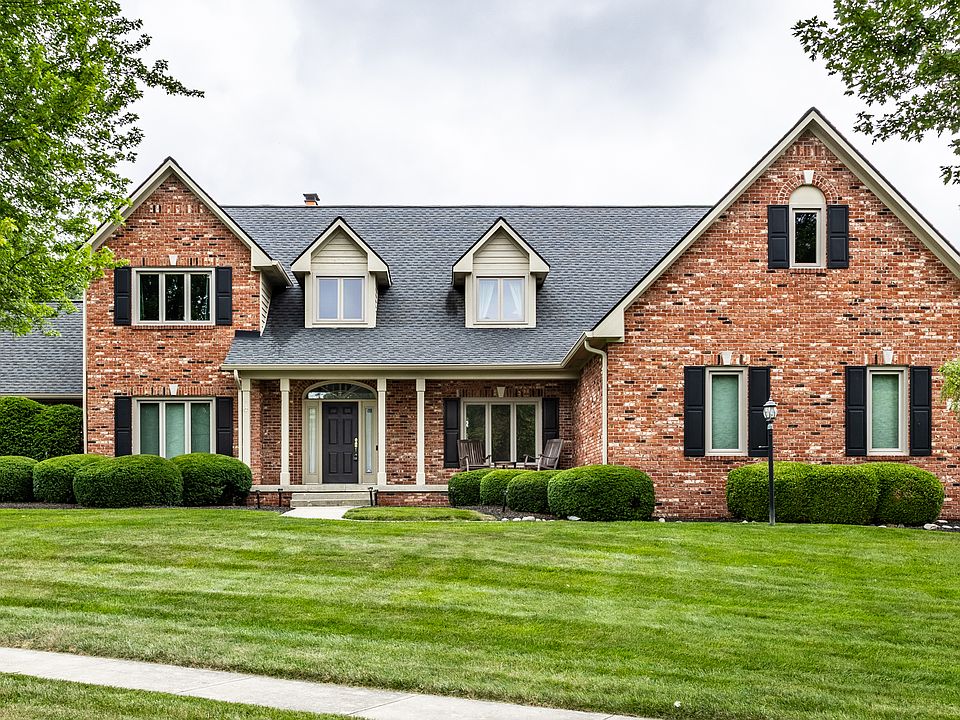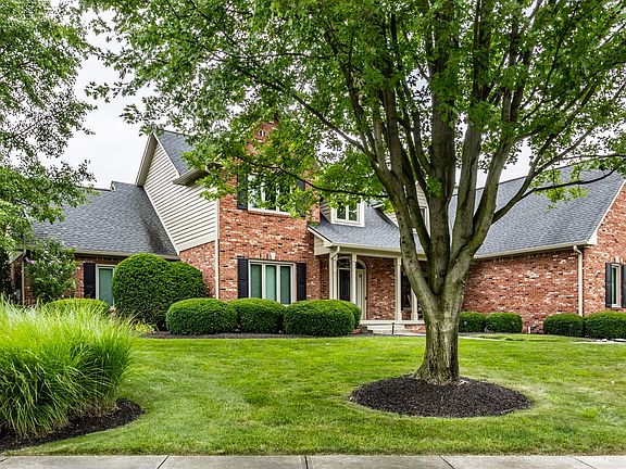 Discover the perfect blend of elegance and comfort in this gorgeous West Carmel home. From the inviting covered front porch to the resort-style backyard with a stunning inground pool, paver patio, and gas firepit. Step inside to a dramatic two-story entry open to the great room with 12' ceilings, a striking brick fireplace and custom built-ins. The chef's kitchen features a 15-foot custom island, granite countertops, and stainless appliances. The main-level primary suite offers a tray ceiling and spa-like updated bath, while a guest suite or office with a full bath adds versatility. Upstairs offers spacious secondary bedrooms including a private en-suite and an additional full bath. The daylight finished lower level offers endless possibilities with a recreation room, family room with a second brick fireplace, office/exercise room, and abundant storage. Relax year-round in the four-season sunroom with a cathedral ceiling and fireplace overlooking the beautifully landscaped fenced backyard and pool. Additional features include new carpet, fresh interior/exterior paint, irrigation system, .64 acre lot and a three-car garage. Top-rated Carmel Schools