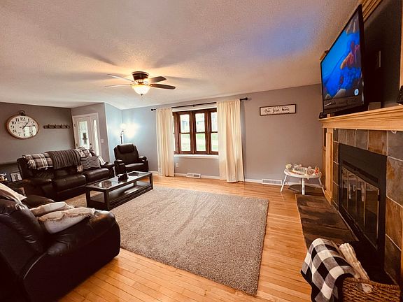 This is a great property situated just outside of town on a 2-acre corner lot. This humble abode packs many perks, including panoramic views from Kitchen/Dining Rooms, spacious deck for entertaining, gorgeous hardwood flooring in Living Area, complimenting carpet in bedrooms & Laundry Room on Main Level. Lower-Level sports huge Family/Rec Room area & Full Bathroom (with new flooring, yet in the boxes for new owner to install or Sellers, as they had previously intended). This property provides room to grow with a move-in ready feel.