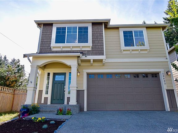 Welcome home to modern elegance! Offering 3 large bedrooms + bonus room & 2.5 bath. Master w/private suite. Light-filled floor plan finished w/ hickory hardwood floors, granite countertops, Chef's island kitchen w/ breakfast bar, SS Appliances, wired surround sound. Radiance is met with high vaulted ceilings throughout, creating an open living & dining area. Spacious fully fenced backyard to enjoy while relaxing in the Jacuzzi. Fabulous location just minutes to Alderwood Mall, Boeing, I-5 & 405.