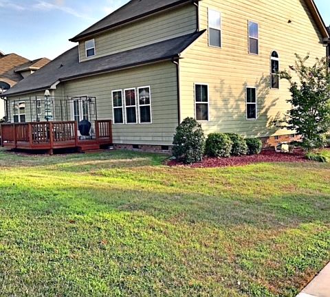 The Ryan homes James Joyce on Helen Benson was formerly a model home and is fully equipped with all of the amenities you would desire in a home. When you enter the foyer there is a balcony pier that overlooks the main level and the entrance is flooded with natural light. The dinning room has custom crown molding and chair rail molding to accent the beautiful hardwood floors throughout the entrance and kitchen areas. The dining room is flanked at the entrance by a large office with lots of natural light giving beautiful street views. The entire first floor has crown molding and there are a series of archways that accent the first floor passthroughs. There is a private first floor powder room with beautiful finishes that allow guests to retreat peacefully. Storage closets are located conveniently on the first level to tuck away coats and house media and home surveillance equipment. Immediately upon entering the home you are welcomed with a open, bright and airy family room view which has a custom built bookcase with pre built led lighting tracks and two custom storage benches. This home is equipped with surround sound throughout the first level common areas and dining room as well as the second level master suite and bonus room/bedroom. The family room is open to a spacious kitchen featuring a breakfast bar, large pantry, and plenty of counter space. This home features a first floor guest suite with full tiled bath and separate A/C control unit for guests comfort. The second level offers even more with a 3 bedroom layout and a spacious bonus room with closet that can be converted into an additional bedroom. The bonus room also features a separate heating and air unit. The master bedroom has beautiful tray ceilings with molding and two spacious walk in his and hers closets. The master bathroom features a large granite double vanity a bathtub large enough for two adults and a custom tiled shower with tile flooring throughout. There are two additional bedrooms upstairs perfect for guests and children of all ages that have a large shared double vanity full bath nestled between them. The two car garage has painted neutral flooring and is finished with drywall and painted. There are also vaulted ceilings with pot lights throughout and a side entry door with sidewalk for easy access. Other great features include tankless water heater, outdoor show lighting which makes the home look amazing at night, an irrigation system and a front porch globe camera. This lot features lots of beautiful outdoor shrubbery and vent well water guards to prevent water runoff beneath the home. Every area of the home is not included in the photos. This property is a must see and the community is very diverse and friendly to say the least!