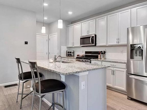 Clean and beautiful 2019 townhouse that opens up to grass and park! 3 BR 2.5 BA + loft and full basement. Luxury vinyl flooring on entire main floor. Great room with fireplace has views of park and flows nicely to the eat-in kitchen. Gourmet kitchen has SS Whirlpool appliances, gas range, 42" upgraded cabinets, granite countertops with huge island/additional seating. Upstairs has 3 bedrooms surrounding the flexible loft space - great for TV room or home office. Master Suite includes a luxury master bath - double sinks, upgraded shower/tile. Full, unfinished basement is perfect for storage or workout area. Outdoor area is complete and fully fenced. Other features include a 2-car garage, window covers and window well covers. Energy star certified (high efficiency heating & cooling). This paired home lives as a single family home with a robust 6" between interior walls to ensure no noise. Washer and dryer NOT included. Laundry hook-ups are available. Renter pays for utilities (water/trash, gas/electricity, internet/cable). No pets. No smoking. $2,475 per month. $2,475 security deposit. 1-year lease agreement. First month's rent and security deposit due at lease signing. Proof of income required. Applications through Zillow or Turbotenant for criminal background check, credit report, and eviction report. Minimum credit score of 700. No previous evictions or unpaid rent.