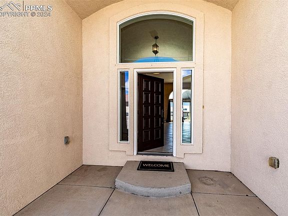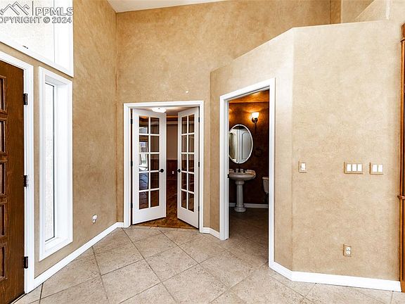Welcome to this meticulously crafted custom home, proudly presented by its original owner and nestled within a prestigious gated community in Gleneagle. This former builder's show home boasts an array of upgrades, setting a standard for luxurious living. Upon entering, you're welcomed by an elegant expanse of marble tile flooring that adorns the main level, seamlessly blending into an open-concept design highlighted by a captivating watch deck, offering serene mountain views. The kitchen, a chef's dream, features custom red cherry wood cabinetry, state-of-the-art appliances, exquisite marble countertops, a versatile island bar, and an advanced water filtration system. Adjacent to the kitchen, the dining area offers panoramic views of the mountains. Conveniently located between the kitchen and garage, the laundry room includes ample cabinetry, a sink with a faucet, a tiled countertop for folding, and a newer washer and dryer set. The living room promises relaxation with a cozy fireplace and custom-built cabinets. The main level hosts the primary bedroom showcasing crown molding, breathtaking mountain views, new carpet, and a master bathroom with a spacious tiled shower, a luxurious jacuzzi bathtub, double vanity, and marble flooring. An additional room on the main floor offers natural red cherry wood floors and elegant wainscoting. The basement serves as the heart of entertainment, featuring a bar, two additional bedrooms, a bathroom, a wine room with marble flooring and a cozy sitting area, a hidden storage room, and a spacious entertainment area with a recessed ceiling. The wine room includes a wall rack for showcasing your cherished collection. The oversized two-car garage is equipped with a built-in workbench, abundant shelving, storage cabinets and extra insulation for year-round comfort. This exclusive residence is ideally situated in a tranquil enclave, yet conveniently close to I-25, offering easy access to shopping, golf, entertainment, and dining options.