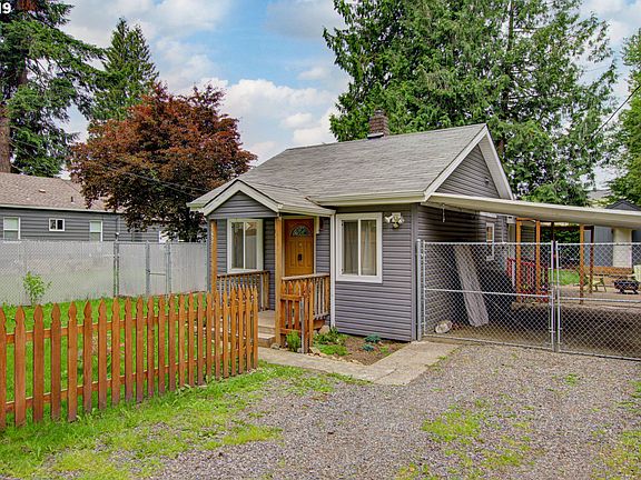 Beautifully Kept Bungalow! Notice the gorgeous landscaping as you approach this lovely home. Enter to light filled, open living. SS appliances and convection oven in updated kitchen that opens to dining. Access to backyard from dining. 2 generous bedrooms, 1 with walk-in closet. Dedicated laundry room. Covered porch in front. Newly added paver patio & front fence. Carport and shed w/ shop bench and cabinets in fully fenced backyard. [Home Energy Score = 8. HES Report at https://rpt.greenbuildingregistry.com/hes/OR10103261]