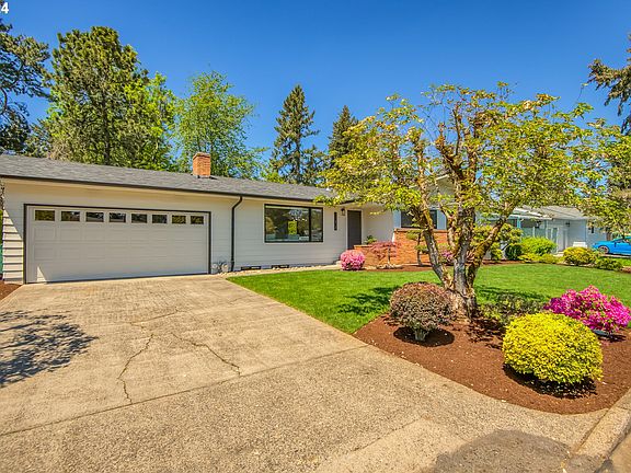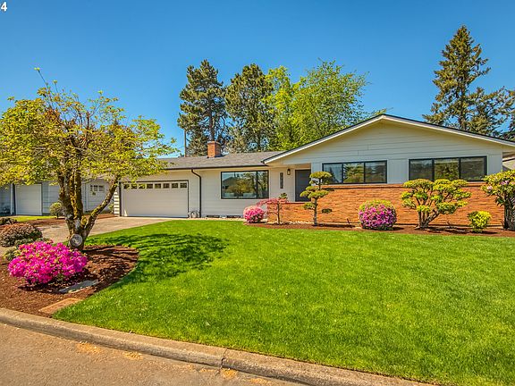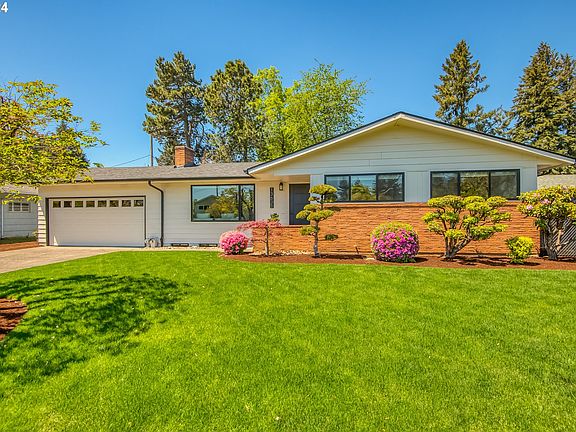 Welcome Home! This mid century modern home has been extensively updated and improved, while maintaining its Mid Century modern character. The 4 bedroom, 2 bath home has an additional bonus room that could be used as a 5th bedroom, office, exercise room etc. This home has a large primary bedroom with en-suite, and large walk in closet. Home features newer 40 year roof, new gutters, siding, high efficiency windows and doors, new electrical panel, energy efficient electrical fixtures, newer plumbing lines, and plumbing fixtures. Other updates include new kitchen quartz counter tops, with marble backsplash, and SS appliances. Stunning refinished hard wood floors, updated laundry room cabinets with quartz counter top, bonus room with new commercial flooring. New exterior and interior paint. The other home features to enjoy are the two wood burning fire places, the in ground automatic sprinkler system, the covered patio over looking fully fenced yard surrounded by privacy hedges. The raised garden bed and storage shed are ready for your gardening projects. The two car garage with built in cabinets will provide additional storage. 95% efficient Forced Air Furnace and A/C. With newer hot water heater will provide energy saving comfort, HES 6. There is an additional back entrance to basement for possible separate living or possible ADU conversion. All this in close proximity to schools, parks, dining and shops! Don?t miss out on this wonderful home! One of Sellers is a licensed real estate agent. [Home Energy Score = 6. HES Report at https://rpt.greenbuildingregistry.com/hes/OR10228261]