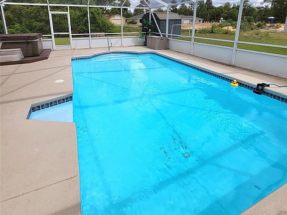 Beautiful 3/2 pool home. Updated, New A/C with Green Halo system. New flooring, screened /cage over pool and patio area . Outdoor Jacuzzi Tub. Two Sheds one is new. Bonus room and large laundry room, freshly painted inside and out. Appliances 2019 Tile throughout, Public water on septic emptied January 2021 . Clean well maintained, ready to move in. Pride in ownership.