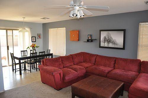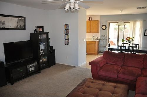 Single Level 3 Bedroom, 2 bath, 2 car garage home on a large lot with green belt in back yard and easy to maintain desert front. Sunscreens and ceiling fans throughout. Tile in kitchen & bathrooms, neutral colors, cozy eat in kitchen, large master bedroom with walk in closet. Community Park/Playground on same street with in walking distance.