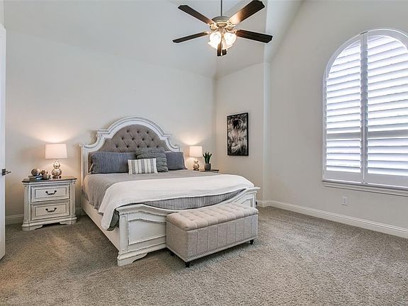 Outstanding Highland Home full of upgrades in exemplary Prosper ISD! Find gorgeous hand scraped floors downstairs, vaulted ceiling with beams in the living room, gas fireplace with stone hearth. The bright, white kitchen features an island with gray waterfall counters, a 5 burner gas cooktop, stainless steel appliances with glass cabinet accents as well as a built in planning desk. The gorgeous downstairs Primary Suite located in SW corner has modern beveled tile, dual vanities, oversized shower & a soaking tub. Upstairs has 3 bedrooms (one with ensuite), an open game room with built in bookshelves, and a media room with mounted speakers. There is a covered patio for entertaining and a gas stub for a grill. Plantation shutters in front, a private study with French Doors, 2 dining areas, Ring video doorbell. Community pool & playground, front door west facing. Roof replaced 2019. Costco, DNT & 121 nearby. 2022-08-19
