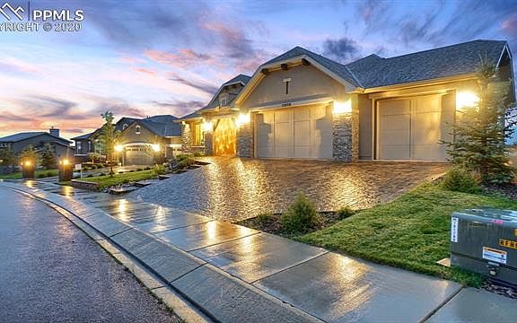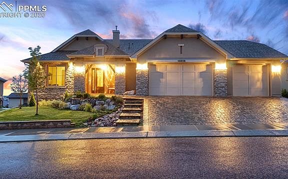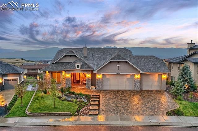 Your dream home awaits. Unobstructed Pikes Peak views, the perfect kitchen, a walkout basement, designer finishes and a premium location - your wish list is covered, at an incredible value over comparable new construction homes. This custom Saddletree rancher combines the best elements of the Dillon and Cherry Creek floor plans: the grand living spaces of the Dillon with the oversized master retreat of the Cherry Creek. Perfection.There are more attributes of this stunning home than we have room here to mention, but here are some of the highlights:' Grand entry with stacked-stone pillars and polished hardwood floors' Elegant kitchen with expansive granite island and countertops' Kitchen Aid appliances including double ovens and a gas cooktop' Main-floor sunroom with gas fireplace and access to the deck' Luxurious living room featuring a gas fireplace with stacked-stone surround and custom built-ins'Expanded master suite with mountain views, access to the sunroom, and ensuite spa-inspired master bath ' Master bath includes soaking tub, spa shower and double vanities with additional storage' Oversized master closet with built-ins and direct access to the laundry room' Stone-paved driveway' Four-car garage with epoxy floor' Enclosed main-floor sunroom for year-round enjoyment of the perfect views ' Uniquely functional main-floor laundry with granite countertops, utility sink, coat closet, and a raised dog-wash station' Walk-out basement has two junior suits with adjoining bathrooms, plus an additional bedroom and full bathroom' Spacious family room with walk-out onto the covered back patio' Custom basement wet bar with full size refrigerator and granite countertops' Upper deck and lower covered patio have gas stubs for your grill and fire pit ' Garage gas line for heater Prime Flying Horse location near Powers, Hwy 83 and I-25. Flying Horse amenities include golf, tennis, fitness center, The Steakhouse, pools and more. 2020-09-25