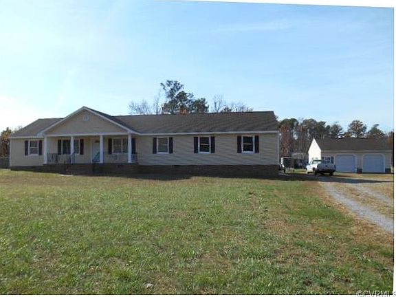 Custom built rancher w/concrete, country front porch. 3, possible 4 bedrooms, 2.5 Baths, Formal living & dining rooms, family room going to deck/patio on back. Custom cabinets in eat-in kitchen w/electric range & dishwasher. There is a 2-car attached & a 2-car detached garage, all on approx. 2 acres! Priced below tax assessment, must see to appreciate