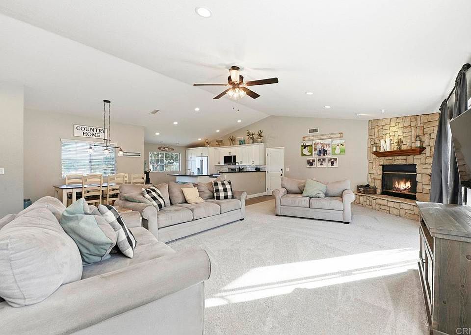 Set on a usable 2-acre parcel, this beautifully upgraded Valley Center property offers the perfect blend of beauty, functionality, and equestrian amenities. Significant system upgrades provide peace of mind, including owned solar with an upgraded electrical panel, a generator hookup (generator included), and a new AC and furnace installed approximately three years ago. The kitchen and hall bath have been tastefully remodeled, complemented by new carpet throughout. In December 2025, new LG kitchen appliances were installed and include a two-year warranty. The home features an inviting living room with a stone-surround fireplace and wood mantel, creating a warm focal point for everyday living. Designed for horse enthusiasts, the property includes a 4-stall barn (37’ x 25’) with a 16’ x 12’ tack room, horse wash station, and a square pen, offering excellent functionality for training and care. The land is enhanced by mature fruit trees, including 10 avocado trees, 4 persimmon trees, 1 tangerine tree, and 2 fig trees, adding both beauty and productivity to the property. In addition to all the amenities already at the property, you have plenty of space to install an ADU and/or outdoor oasis, room for homesteading, additional equestrian facilities, whatever your needs may be. This well-maintained and thoughtfully improved property is ideal for those seeking space, sustainability, and a true Southern California rural lifestyle—just minutes from the heart of Valley Center.