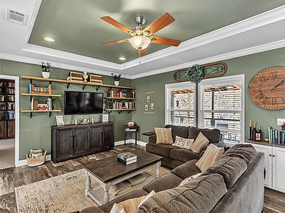 You won’t find a property as unique and with as many amenities as this. Starting with the beautiful acreage, at just over 10 acres, there is a large (shared) pond with small storage for kayaks, fishing gear, all the fun accessories. There is a brush hogged trail with several sitting areas for bird watching. The property is mostly fenced with pipe fencing at the front and barb wire fencing along the side. A remote gated entry has been installed for privacy. The property includes a shop building (20x30, 1 roll up door, one pedestrian door), secondary living quarters barndo (2 bed, 1 bath, kitchen and laundry, 1500 square feet, central heat and air). The primary home is just over 1900 square feet, featuring 4 bedrooms, 2 bathrooms, and a large open kitchen and living area. Not to be overlooked is the lovely greenhouse, storm shelter, established garden area and chicken coop, several storage buildings, and generator hookups on both primary and secondary home, and upgraded ecosmart water filter.