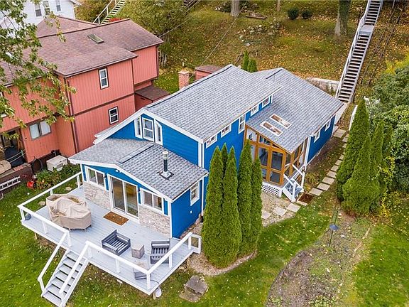 Waterfront living at its best.Tastefully updated and decorated second home and turnkey Airbnb on the beautiful Irondequoit Bay. Brand new steel break wall, NEW Anderson windows ('17), NEW garage doors ('19) and lighting ('19). Enjoy all the sought-after location has to offer including boating, jet skiing, kayaking, fishing, and so much more.With 60' of waterfront this 3 bedroom home can be your personal oasis. One of the few lots with a flat usable waterfront yard, oiversized 2 car detached garage with separate power plenty of flat parking for 6 cars. The property also has a tram to lower groceries or luggage from the parking area to the house. Plenty of room to dock your own boats or jet skis. This is Irondequoit's Bay best value with parking, usable land and amazing waterfront access!