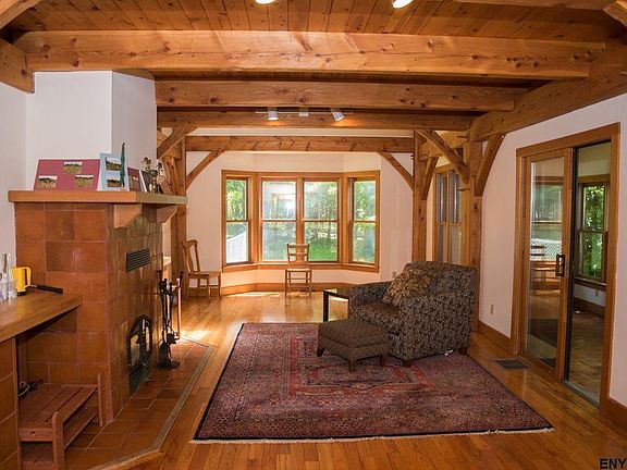 Custom Post and Beam with Tons of Character and Charm, Wood Burning Fireplace, Vaulted Ceilings, Skylights, Sun Porch, Ceramic Tile, Hardwood Floors, Beamed Ceiling and Archways, 2 full Baths, 1st Floor Master. 1st Floor Laundry, 2 Car Oversize garage, Fenced Yard Area, Wrap Around Porch. Private Setting I Great Place to Make Your Home!