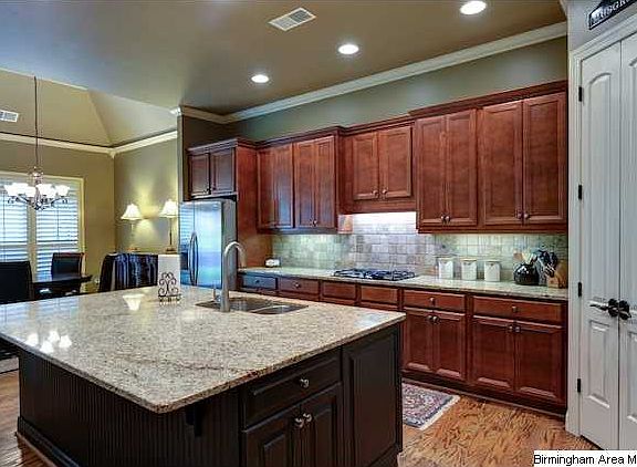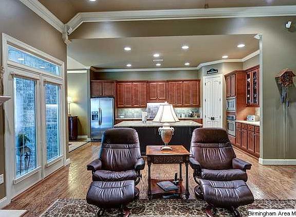 Stunning custom built 2746 +/- SF ONE LEVEL floor plan located in the upscale Ballantrae GOLF COURSE COMMUNITY of Pelham. Extensive upgrades and features include ENERGY EFFICIENT CONSTRUCTION, soaring ceilings, designer wall colors, HARDWOOD FLOORING, GRANITE COUNTERS, PLANTATION SHUTTERS, an amazing covered rear VERANDA and a CUL-DE-SAC lot. The oversized family room has 12 ft. ceilings, hardwood flooring and a cozy GAS FIREPLACE. The chef in the family will love the kitchen with a LARGE ISLAND, custom cabinetry, upgraded STAINLESS APPLIANCES and a CUSTOM WALK-IN PANTRY. An eating area next to the kitchen looks out over the private rear yard. Two guest BRs with 10 ft. ceilings share a tile bath with granite counters. The oversized private master suite has a deep TRAY CEILING, huge WALK-IN SHOWER, JETTED TUB, his/her vanities and a CUSTOM WALK-IN CLOSET. Stairs to a floored attic with loads of EXPANSION POTENTIAL. Private LANDSCAPED YARD with a veranda overlooking a natural area.