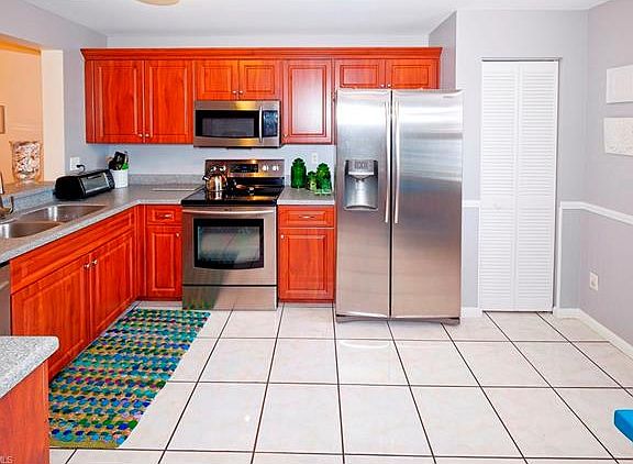 GREAT VALUE! Gorgeous two bedroom two bathroom condo in a safe neighborhood. This condo offers new stainless steel appliances in the kitchen, granite bathroom counter tops, marble floors throughout, storm shutters, a split bedroom floor plan and much more! AC and water heater are only 2 years old. Low HOA fees and in a prime location - only minutes to Naples' beautiful beaches and Downtown 5th Avenue! Community pool and tennis courts are very well maintained. Assigned parking and guest parking right by your door. First floor unit provides quick and easy access in and out of the home. This price is including most of the furniture!