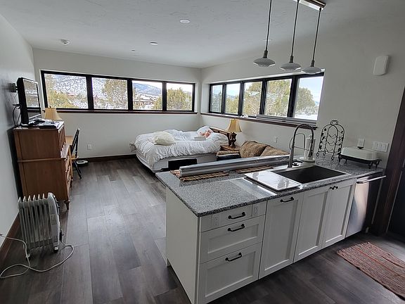 We're seeking a single person who wants to share our new, all electric, Eagle Ranch Highlands home and our sustainable goals (recycling and composting available curbside) . You will be just mere steps to hiking and biking trails. This 487 sf lower level studio unit has high end finishes, infloor heating and cooling and beautiful mountain views. Rented fully furnished and stocked (queen sized bed/linens/dishes) including dishwasher, induction cook top/oven, convection microwave and washer/dryer in unit. One designated parking space with lighted walkway to seperate outside entrance. Utilities/internet are included and EV charging is available. No smoking/vaping of any kind. One well behaved dog will be considered. Sorry NO Cats due to allergies of upstairs residents. $2000/month. Long term rental only (minimum 1 year). Must work in Eagle, Garfield or Pitkin Counties at least 30 hours a week. Available for immediate occupancy. One year lease required (no short term rentals). Renter must work 30 hrs or more in Eagle, Garfield or Pitkin Counties to qualify. Owner pays for all utilities and internet. No Smoking or Vaping allowed. One parking spot is provided. If desired, an EV charging port is available at an extra charge.