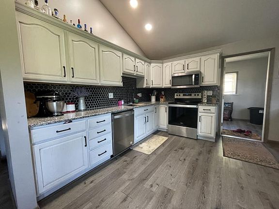Welcome to this charming home located just minutes away from town. This ranch-style house offers a comfortable and convenient living experience. With three bedrooms and two bathrooms, it's perfect for a family or those looking for extra space. Many of the bigger updates have already been taken care of, ensuring peace of mind for the new homeowners. The house boasts a brand-newer furnace and air conditioning system, new roof within the last 12 months. Newer windows and siding enhance the home's curb appeal while improving insulation and energy efficiency. Additionally, the well pump has been recently replaced. As you step inside, you'll notice the cathedral ceilings in the kitchen and new countertops backsplash and refinished cabinets, creating an open, warm and spacious atmosphere. The kitchen itself is well-designed, offering ample counter space for meal preparation and storage for all your kitchen essentials. The master bedroom is generous in size and features a convenient walk-in closet. It provides a cozy haven to relax and unwind after a long day. The main bathroom has been beautifully remodeled, adding a touch of modern elegance to the home. One of the highlights of this property is the large laundry room, which not only provides plenty of space for laundry-related tasks but also offers ample counter space and storage. This room is a practical and functional area, making household chores a breeze. Situated on just over an acre of land, the yard provides plenty of outdoor space to enjoy. For those with furry friends, there is a nice fenced-in area specifically designed for dogs, allowing them to roam and play freely. Additionally, the garage workshop is insulated and heated, making it an ideal space for hobbies, DIY projects, or simply parking your vehicles. The concrete driveway adds a touch of convenience and durability. Overall, this home offers a great combination of updates, functionality, and outdoor space. It's a fantastic find for anyone seeking a comfortable and well-maintained property just minutes away from town.