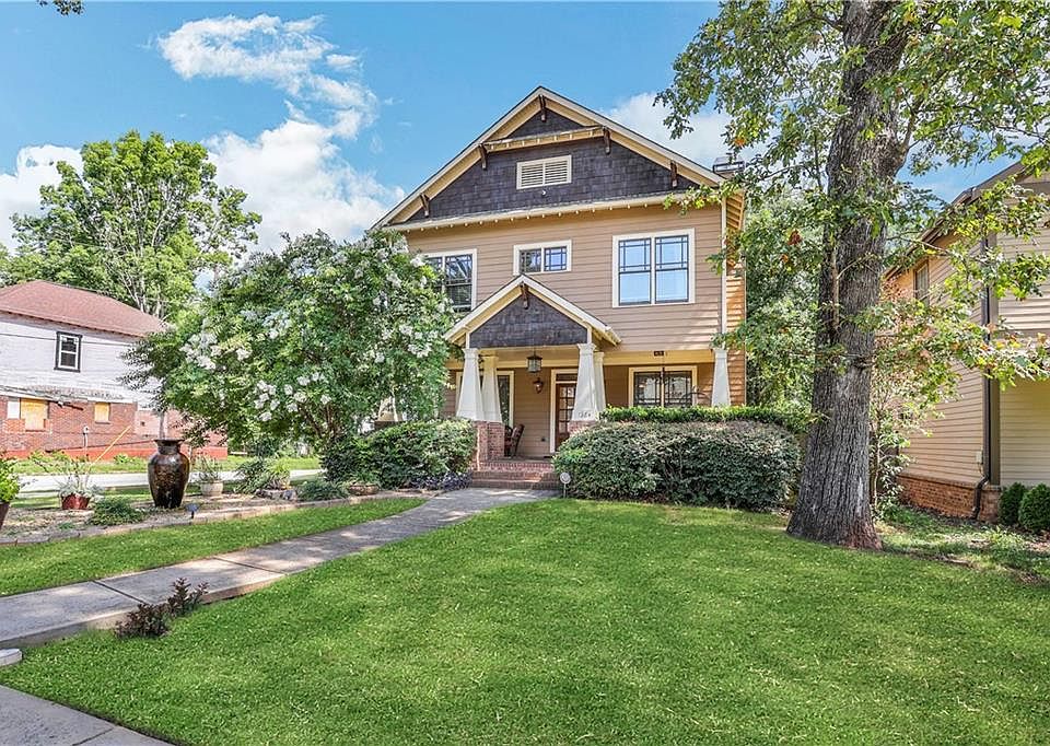 Customized home situated on a wide corner lot at the intersection of Patterson and McPherson two blocks from the East Atlanta Village. The main level includes a large front porch, hardwoods, guest suite with separate entrance to covered rear porch, office, kitchen with large island open to large dining and living room. Living room has large fireplace and coiffured ceilings. Upstairs includes large owner’s suite with walk in custom closet, renovated ensuite marble bathroom with Koehler fixtures, separate electronic shower, water closet and soaking tub. Laundry room that opens into hallway and owner’s suite. Two additional large bedrooms with walk–in closets and ensuite jack-in-jill bath. Covered back porch and open deck adjacent to a bocce ball court and large carriage house with a two car garage and additional two bays for storage inside of the rear fenced yard. This home is designed for living and entertaining indoors, in the carriage house and multiple outdoor gathering areas. Walk to all the restaurants in EAV, the library and Post Office!
