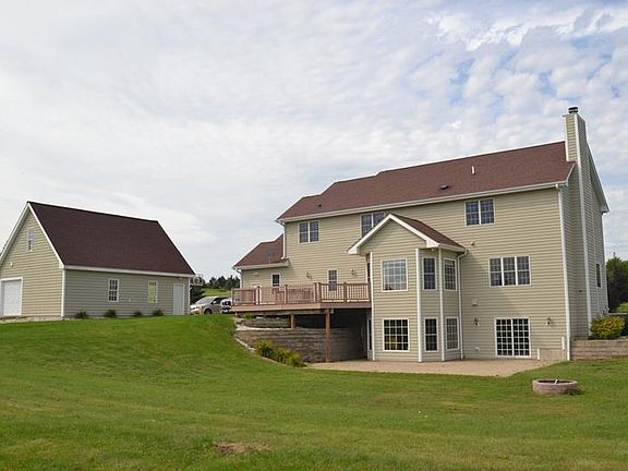Tons of space can be found in this custom home. Humongous kitchen with birch cabinets and solid surface counters which opens to a vaulted sun filled dining area and family room that sports a fireplace and French doors that lead into a living room. Also off the kitchen and foyer is a large den or formal dining room. First floor also includes an enormous mud room and separate laundry. The second floor has a library loft, 4 bedrooms and 3 full bathrooms! Fully exposed basement, 2.5 attached garage plus a 2.5 detached all on 2.53 acres backing up to a park!