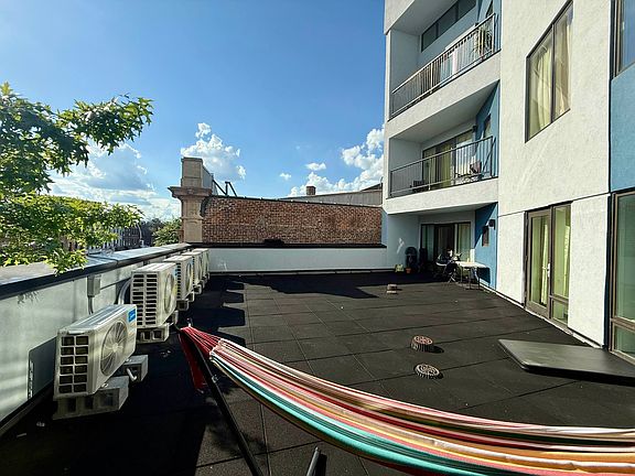 Gorgeous 1bed/1bath apartment with a large shared terrace and tons of a natural sunlight. Located in the heart of Flatbush, you're just steps from the 2/5 trains, Brooklyn College, local shops, and cafes. The unit features hardwood floors, floor-to-ceiling windows, stainless steel appliances, and central air. Built in 2020, the building offers bike storage, laundry, and a vibrant neighborhood vibe. - No fee - Lots of natural light - Large spacius terrace - Spacious living room - Dishwasher - Hardwood floors - Laundry in building - Shared rooftop - Central AC - Parking garage - Bike-room - Package room