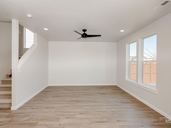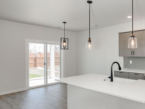 This new home located in beautiful Kuna, Idaho has all the comforts you need & more! The Hugo 1650 is endearingly charming and reassuringly practical. The main level welcomes occupants and guests alike with open and friendly living spaces. The kitchen comes with stainless steel appliances and stylish solid surface countertops, adding both functionality and aesthetics to the kitchen. Easy access to the yard is just right outside of the dining room. Head upstairs where a primary suite spans the entire rear of the home and contains a walk-in closet and spacious en suite bathroom. The two other bedrooms and the laundry room are also situated upstairs along with a full bathroom. The garage offers plenty of space to park cars and toys or use as storage. Photos are similar. All selections are subject to change without notice, please call to verify.