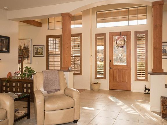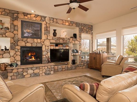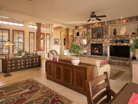 Located in the desirable Estates at Prescott Lakes on a quiet cul-de-sac, this single level Carrington home has it all. Light and airy, walls of windows overlook the lush backyard expanding the spacious feel of the open floor plan. The Great Room features an extended rock wall with a raised hearth gas fireplace. Beautiful granite-countered kitchen features a breakfast bar, stainless steel appliances including a gas cook top and walk-in pantry. Master suite features rich granite counters and a luxurious raised garden tub. Professionally landscaped front and back with a water feature and fire pit and private pergola for summer evening dinners. Three-car garage has plenty of storage cabinets. Additional features include extensive tile flooring and 8' doors throughout.