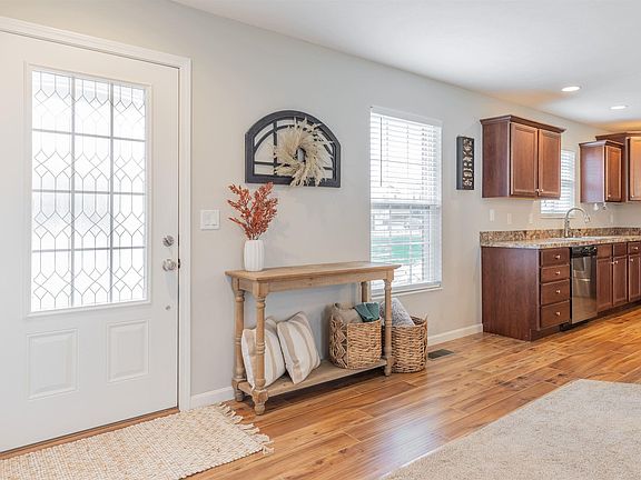 Awesome one level home built by "John Elpers'. Located in Mccutchanville & offers OPEN LAYOUT, split bedroom floor plan, & a 24 x 23 attached garage. The backyard is bordered by mature trees & property is on a cul-de-sac street for low traffic. All doors & hallways are 36 inch wide & the great room, kitchen, and breakfast nook are seamlessly connected. The kitchen offers an abundance of castled cabinets w/ added built-in pantry & coffee bar. Fully equipped with all kitchen appliances & kitchen island for extra seating, countertop space, & more storage. Breakfast nook looks into the incredible backyard with covered gazebo & oversized patio with fire pit & built-in benches. Peaceful backyard with evergreen trees and field behind. Owner's suite offers a large walk-in closet with built-in wood shelving & ensuite full bath with high top vanity & double bowls. Beautiful laminate floors in the foyer, great room, kitchen, & breakfast nook. Separate laundry & inside crawl space access. Immediate possession at closing. All appliances inside home are included in sale. One year home warranty w/ roof coverage provided at closing .