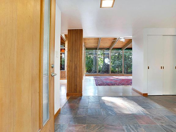 Cool, Clean & Sophisticated, this architectural masterpiece by Lloyd Gilham has a wide open floorplan with expansive walls of glass. Set off the street for maximum privacy. Uncluttered and sleek. Cork floors, clear grain fir cabinetry, form follows function in this beautiful home. Oversized 2 car garage plus 2-carport. An entertainer's dream kitchen & yard. Open 9/15 & 9/16 1-3