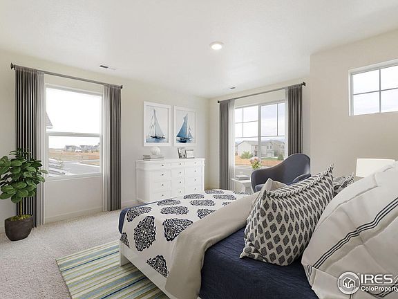 Ready Now! This elegant 4 bedroom, 2.5 bath home backs to open space and has a WALK OUT BASEMENT! Contemporary grey cabinetry throughout, large kitchen island, granite countertops, stainless steel appliances and a walk-in pantry. 9' ceilings, smart home technology, deck, fridge, blinds, A/C and front & backyard landscaping included. Miles of trails, central playground and a dog park for all to play! Super location with quick access to I 25, in the Mead/Longmont/Firestone area. Discover Lakeside Canyon, Live the Playful Life! ***Photos are representative and not of actual home***