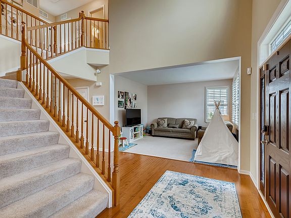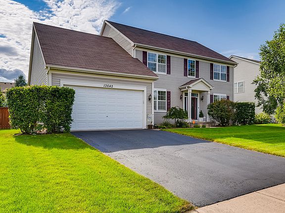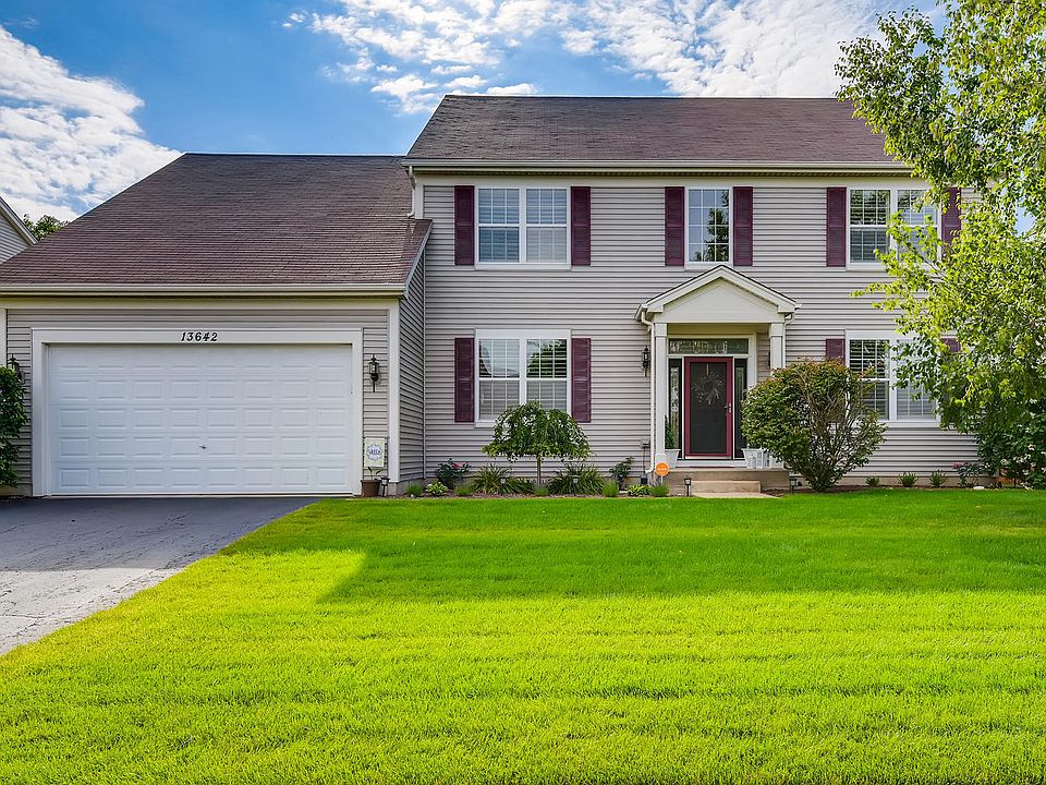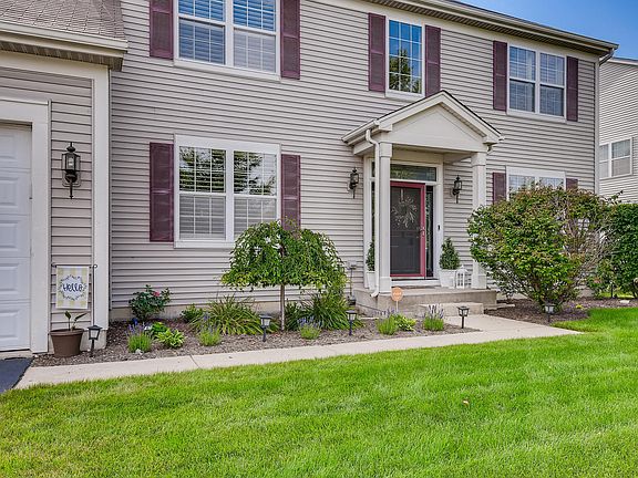 Welcome to this beautiful traditional 2-story situated on a quiet tree-lined street in the heart of Prairie Knoll of Plainfield. Open floor plan with nine-foot ceilings and hardwood floors throughout most of the first floor. Eat-in kitchen with both a breakfast island and table space opens into the extra-large family room with stone surround gas-log fireplace (gas start and can be converted back to wood-burning). An abundance of windows allows for an abundance of natural light in every room. The kitchen features a large island, Corian countertops, under-mount double sink, tile backsplash, 42" maple cabinets with crown molding up top, stainless steel double oven, and a Butler pantry in between the kitchen and the formal dining room. Sliding glass doors bring you out to the professionally landscaped yard with an in-ground sprinkler system and oversized paver brick patio featuring a built-in firepit. A private first-floor office with views of the backyard. A true mudroom is a nice touch rounding off the first floor. Upstairs we find a large primary bedroom and primary bathroom with a walk-in closet with Elfa custom shelving, dual sink vanity, and separate shower from the bathtub. The remaining three bedrooms are large and share the hallway bathroom. Full basement with roughed in plumbing for future bathroom. Tastefully decorated throughout with light trim and today's colors upstairs. Close to Rt 59 and all that in offers in terms of shopping, restaurants, etc.