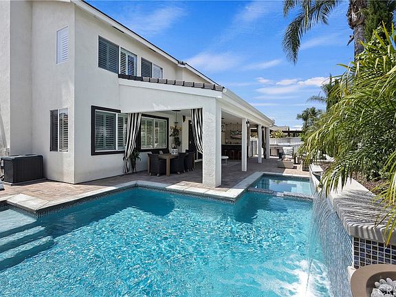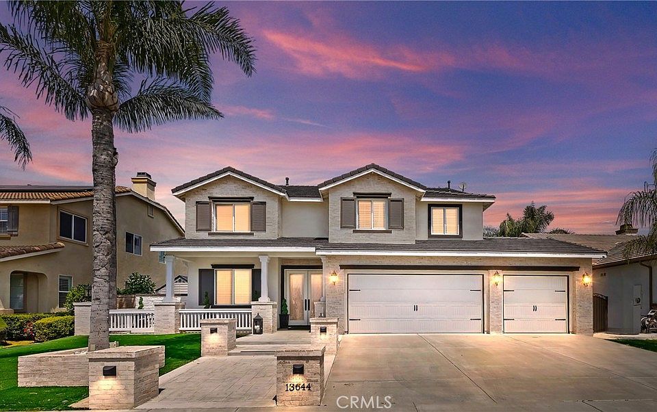 Luxury living at its best. Be wowed, when you walk into a marble wood frame foyer that then opens up to a 20 ft ceiling great room lined with white wall wood paneling, crown molding, plantation shutters and top quality natural toned engineer wood floors with 7’ baseboards. As you walk through you will notice the elegant glass encased wine cabinet with lighting and brick veneer that matches the front the house. In the kitchen you will notice the custom white cabinets with moldings that light up on the top and bottom a standalone vent hood and the 36’ farmhouse porcelain sink. The kitchen has an extra-large waterfall quartz island with additional cabinetry for storage. The kitchen features all kitchen-aid appliances a commercial grade cook range, convection microwave, convection oven and a wine fridge. As you move into the extended kitchen area and entertainment area you will notice the crown molding, shutters and wood floors run consistent throughout the entire downstairs dry areas. Entertainment room has a custom built-in entertainment cabinet topped with lighting and room for a 75” Television. Then you notice the beautiful fireplace with cast iron doors, and marble lines accent wall. This room is bright and through the shutters you can see the beautiful bright blue wraparound saltwater pool finished with pebble tech and custom mini tiles that feature a 3 ft water fall from the center. Heading upstairs you walk into a double door Primary Suite large enough to have another entertainment area in your room, featuring a beautiful accent panel wall, crown molding continues throughout the upstairs and a dream like spa & bath, featuring a stand-alone soaking tub, gorgeous Calacatta marble and mother of pearl mosaic shower walls/shower floors with frameless ultra-clear glass shower doors, 2 rain shower heads, Calacatta marble floors, new cabinetry with quartz counters under mount sinks and the best of all, mirror tile walls over the vanities with light up LED mirrors, absolutely breathless but that’s not all. The closet is a full walk-in closet with wood floor and two separate entrances. The two additional bathrooms continue the theme with the marbled quartz counters, brand new cabinetry and tastefully designed tile and glass doors. This House is an entertainers dream and is walking distance to top rated Rosa Parks Elementary, Augustine Ramirez Intermediate and 10 minute walk to ESTEM/Roosevelt High School true must see! There is nothing like it in Eastvale!