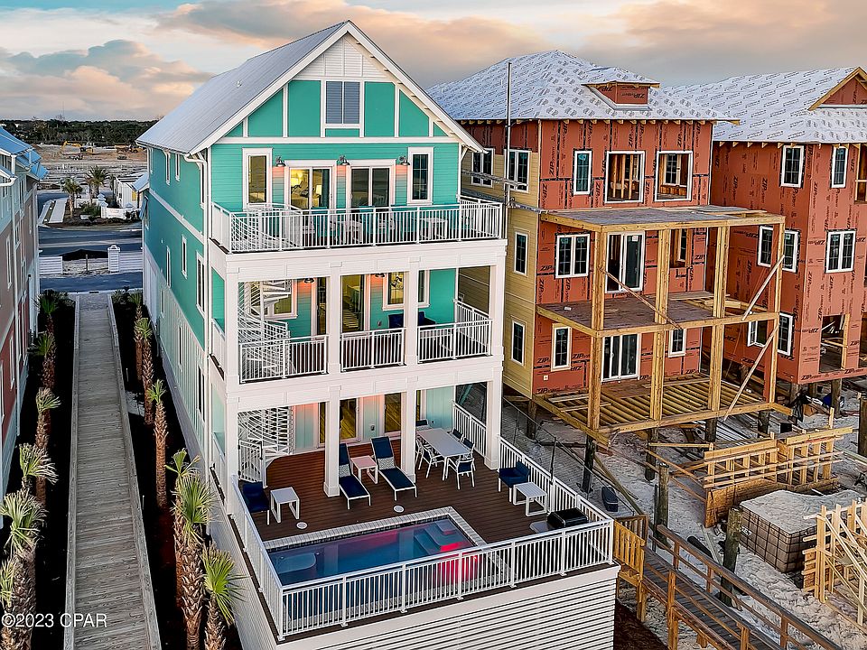 Margaritaville Beach Cottage Resort is the newest and hottest development in Panama City Beach. Located along the sugar white sands of Panama City Beach, Margaritaville Beach Cottage Resort is a state of mind where you'll find a slower lifestyle, relaxed sunsets, easy access to food and drinks, and a once-in-a-life-time lifestyle experience where the views are spectacular, and the amenities are like no other. Along the Gulf Of Mexico, you'll find this majestic 6 Bedroom plus bunks, six-and-a-half bath home with a private pool, spacious entertainment and living areas, direct beach access, and parking for five cars. Stainless Steel appliances, Quartz countertops, tankless water heater, and elevator to all three floors makes this perfect a home for large family gatherings and entertaining groups of friends to watch sunsets and lounge by the private pool. This home is being sold fully furnished and ready for immediate rental occupancy. The amenities you will experience and enjoy at Margaritaville Beach Cottage Resort include 580' of dedicated beachfront, an expansive resort oasis pool, 425' lazy river, an on-site restaurant and poolside bar, poolside cabanas, waterslides, and water features, pickleball court, game lawn, fire pit, souvenir, and sundries shop, outdoor movie showings, hammock grove, beach chairs and umbrellas and much more. Amenities are currently under construction.