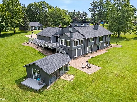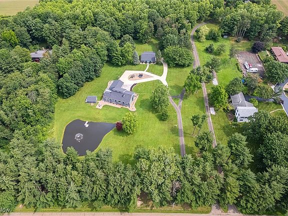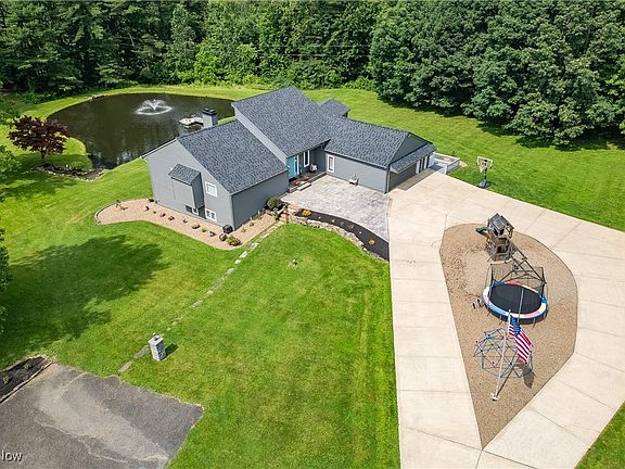 Stunning Contemporary Retreat on 3.7 Private Acres in Marlington School District! Tucked away down a paved, winding driveway, this beautifully maintained 3-bedroom, 3-full bath home offers 2,151 sq ft of living space plus an additional 1,544 sq ft in the finished lower level—perfect for multi-generational living or entertaining. Situated on a serene, 3.7-acre private lot, this property has a ton of amazing features including a stocked pond complete with a waterfall and fountain-aeration system, creating a peaceful, park-like setting. Step into the vaulted foyer and take in the spacious living room with dramatic ceilings and wall-to-wall windows overlooking the water. The gourmet kitchen is a dream with granite countertops, rich cherry cabinetry, sizable pantry and abundant natural light. Adjacent to the kitchen, a cozy sunroom-style dining area leads to the elevated deck, which cascades down to a brick patio and a charming little lake house with its own private deck—a perfect escape or entertaining spot. A lofted second-floor space offers a stunning view of the living area below—ideal as a home office, sitting area, or guest space. The main-floor primary suite is a true retreat, featuring a luxurious updated bathroom with a walk-in shower, soaking tub, dual vanities, and multiple closets for ample storage. The walk-out lower level has been completely remodeled, offering a massive family room, a kitchenette, and endless potential for recreation, hosting, or extended living arrangements. Discover the other two bedrooms and full bathroom down here as well! Additional features include: Oversized 2-car attached garage , 30x40 detached garage/workshop, Abundant storage throughout the home, High quality flooring all through, Quiet, private location set well back from the road. This one-of-a-kind property blends modern style with natural beauty and space to live, work, and relax in total comfort. Roof 2 years old (home, garage, lake house). Whole exterior newly painted!