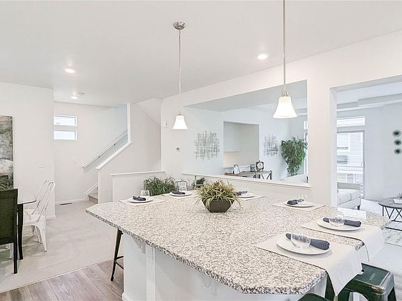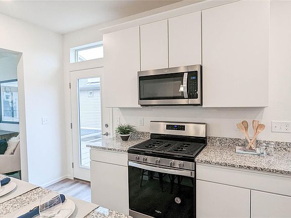The dining room is located adjacent to the great room, offering a convenient space to host meals and gatherings. The island in the kitchen provides extra counter space and serves as a natural focal point for the room. The appliance package includes all the essential appliances you need to whip up delicious meals with ease.